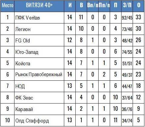 ЧЕМПИОНАТ ВИТЯЗИ 40+